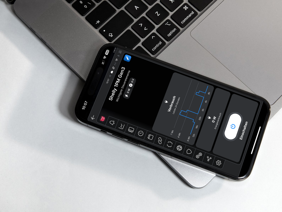 • Consumption control: In the app, you can see live how much energy each light source consumes - and can optimise it in a targeted manner. Good to know: The consumption display works with devices that have an energy measurement function, such as models from the Shelly PM or EM series.