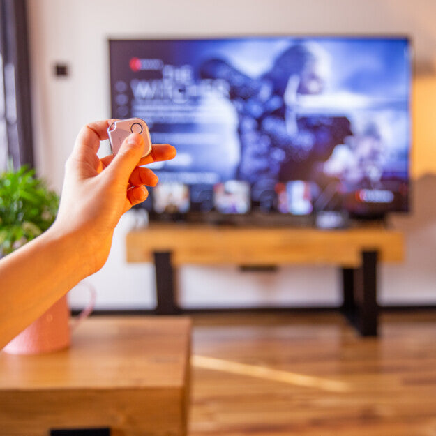 Bluetooth button for operated actions and scene activation. Quickly control your smart devices with just a click - turn off the lights, adjust your blinds, open the garage door and many more.