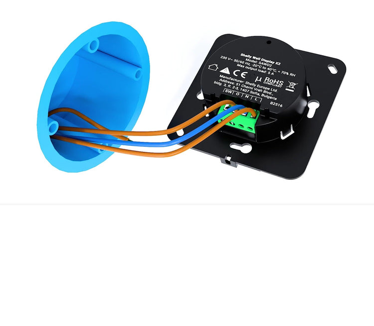 Shelly Wall Display X2 features a vibrant 6.95" touch-sensitive color display, offering seamless navigation and an easily customizable home screen. Effortlessly control your lights with the integrated relay and get real-time temperature & humidity insights. The device also provides power consumption data for all connected Shelly PM devices, putting complete energy monitoring at your fingertips.