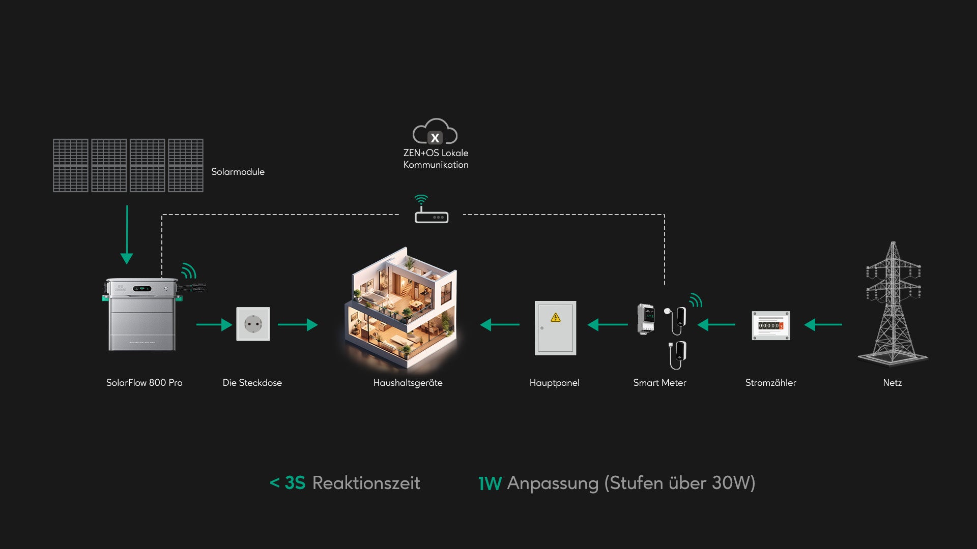 ZEN+ OS ist in den SolarFlow 800 Pro und viele smarte Geräte integriert und gibt dir die volle Kontrolle über deinen Energiehaushalt. Profitiere von blitzschnellen Reaktionen, absoluter Zuverlässigkeit – auch ohne Internet – und einem präzisen Energiemanagement, das Verluste minimiert.
