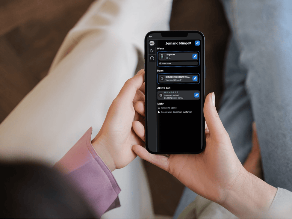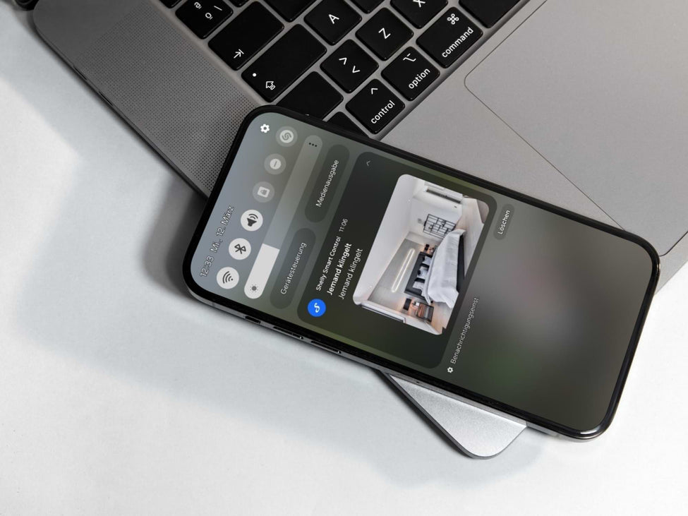 A smart doorbell can control and activate other networked components. For example, an IP camera can be switched on via a relay, such as the Shelly 1 Gen3. If someone presses the doorbell button at the front door, you can check directly in the camera app to see who is asking to come in or program a routine. The smart peephole provides a big plus in security, especially in the evening or at night. Even if the children are home alone, they can check the family tablet to see who is at the door before opening it. However, make sure that the video recording does not cover the neighboring property or public areas.