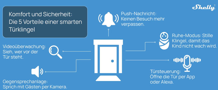If the doorbell is integrated into the smart home via the Shelly system, it can also be used to control an electric door opener. This means you can also open the door when you'reout and about. If you are at home, you can use voice commands to ask Alexa to open the door when the doorbell rings. The prerequisite for this is, of course, that the door opener is electrically controlled. However, make sure that this automation cannot be used by unauthorized persons and that children, for example, inadvertently give the voice command to open the door.