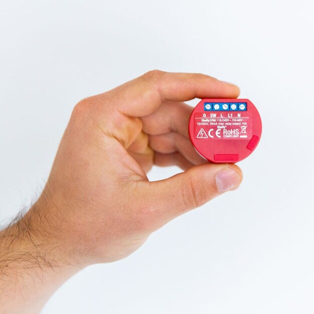 Control and monitor a wide range of home appliances from anywhere with the tiny Wi-Fi-operated relay switch featuring precise power monitoring - Shelly 1PM. From light automatization to electrical appliances control, Shelly 1PM provides accurate power metering with free cloud data storage for further analysis and energy usage optimization. Small enough to fit behind every wall switch or wall socket, Shelly 1PM is retrofitted and can be installed in less than 10 minutes.