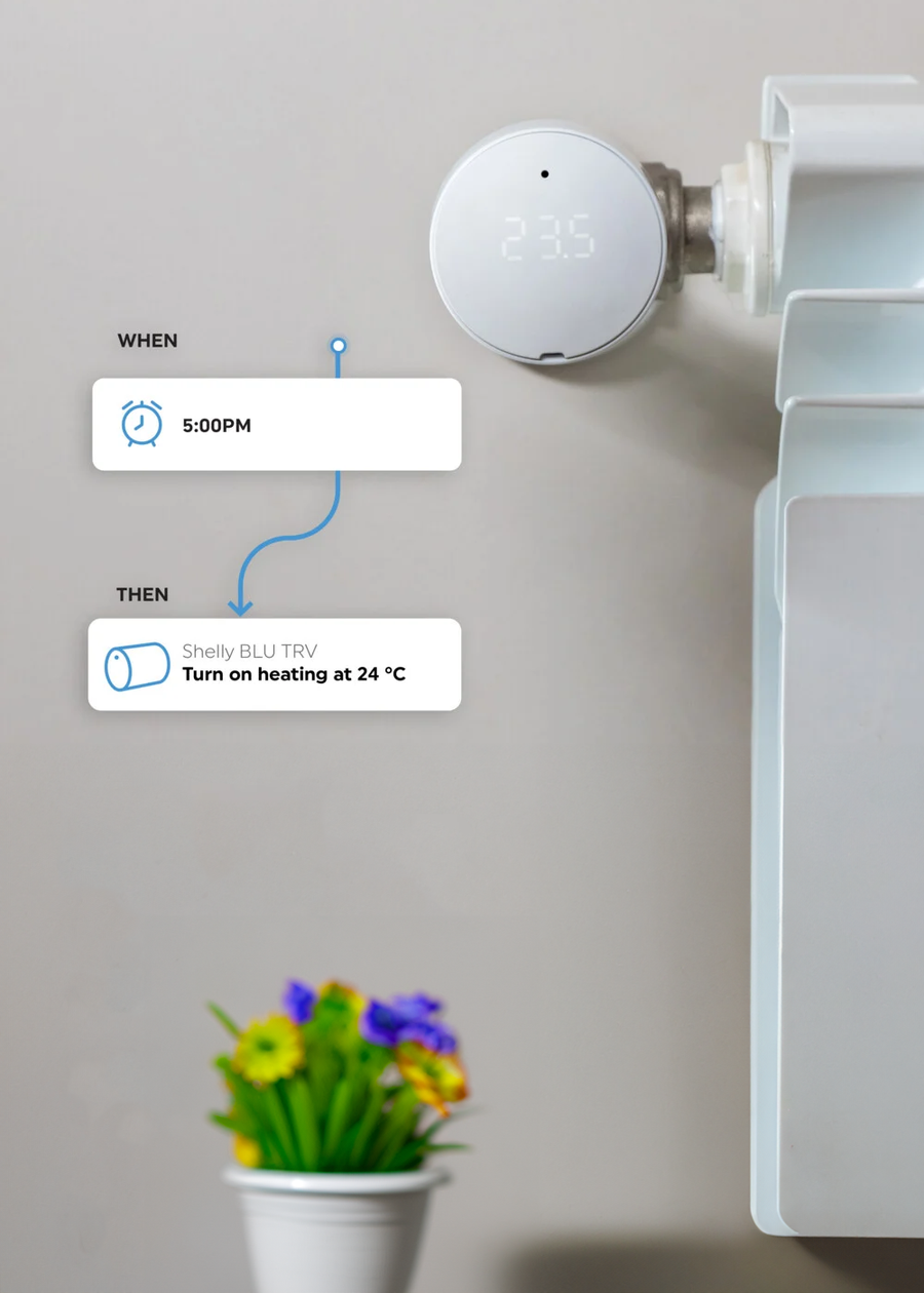 Adaptive learning for personalized heating: Adjust your heating system for optimal comfort and safety using data from external sensors, such as Shelly BLU H&T and Shelly BLU Door/Window.
