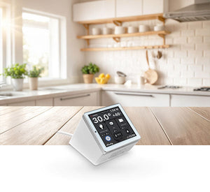常规价格 €170,90促销价 €170,90 常规价格单价 单价配备更大尺寸的 6.95 英寸彩色触摸屏,这款终极智能家居显示器让您轻松监控、控制和切换电路——所有操作都可在一台时尚直观的设备上轻松完成。为了实现精准的气候控制,设备现已搭配 Shelly BLU H&T 传感器,确保温度和湿度读数准确,为恒温器功能提供最佳支持。房间管理恒温器集中控制 -